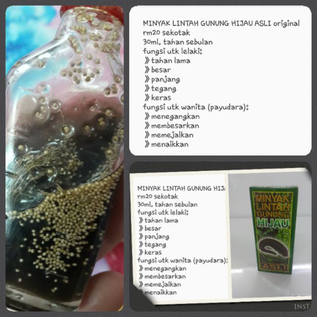 Minyak Lintah Gunung Hijau Ori Shopee Malaysia from cf.shopee.com.my Jualan minyak lintah ini adalah bermula dari jun 2019 sehingga mei 2020. Sudah banyak orang membuktikan khasiatnya lintah papua. Dan ini adalah perkembangan yang dia perolehi. Promosi minyak lintah gunung hijau untuk lelaki dan wanita rm30 free postage rm25/botol klu order 4 botol free postage klu 100 ke atas bleh dapat rm15/botol. Minyak lintah hitam papua belakangan ini sedang hangat sekali diperbincangkan di dunia maya. Khasiat minyak lintah ekstrak lintah gunung mlg facebook. Minyak lintah tradisi gunung asli intim originalmalaysia com. Minyak lintah gunung hijau 100% selamat digunakan tanpa kesan sampingan seperti rasa panas, rasa kebas, tidak selesa atau bau yang tidak menyenangkan.