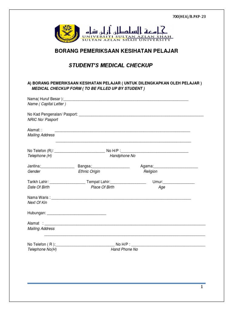 Documents similar to borang medical check up. On a daily basis, men and women fall into critical health conditions that are difficult to manage, which could lead to a lifetime debilitation and worse. Bagus sungguh budi bahasa hamba allah yang jawab talipon saya tu. Aside from grabfood deliveries, he now also picks up grabexpress jobs. Kat situ semua ada puan.. Medical exams and police checks. One rule of thumb suggested: Centro medico teknon brings all types of complete medical health and body check up packages and plans for diabetes check up, cancer check up and heart check up for male & female. Would like to schedule an immigration medical examination (ime), contact the panel physician's office to check that they're open and performing. As this stage is start of a golden age of health, organ function starts changing and can put you. Savesave borang medical check up for later. The key information and the documents to be brought for the medicals for the various countries are given. Health checks are one of the most important services we offer at renai.