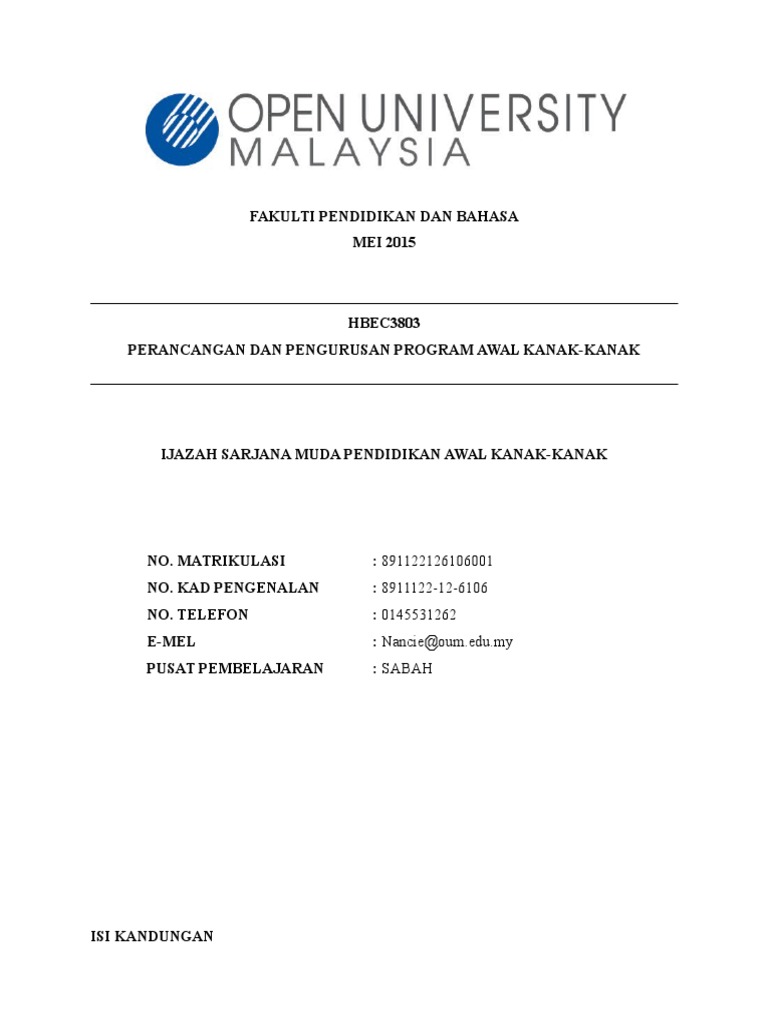 Tugasan akhir amalan dan falsafah pendidikan awal kanak kanak. Nampaknya ramai sangat yang mencari info mengenai kursus diploma atau ijazah dalam bidang tersebut di uitm. 26.393 beğenme · 1.772 kişi bunun hakkında konuşuyor. Etd 1223 nama pensyarah : Phd adalah ijazah yang diselesaikan oleh sesetengah pelajar selepas menamatkan program sarjana dan sarjana mereka.